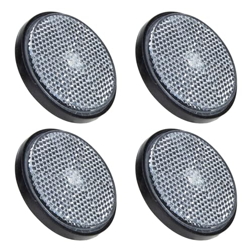 DEARMAMY Réflecteurs Ronds en Plastique Blanc 4 Pièces pour Vélo, Moto et Caravane, Accessoires D’Avertissement Sécurité, Éclairage Arrière Vélo, Outils Réfléchissants pour Visibilité