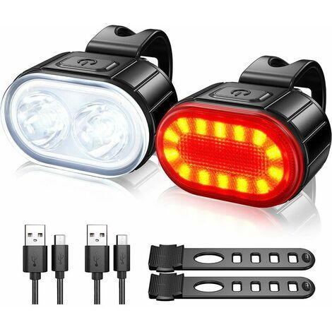 Lumiere Velo Ensemble Eclairage Velo A Led Puissant Kit Lampe Velo Etanche Feux De Vélo Rechargeables Par Usb Lumière Velo Route Avant Et Arrière Starlight