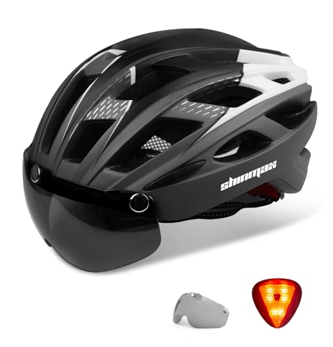 Shinmax Casque de Vélo avec Éclairage LED, Casque Velo pour Homme Femme Casque Vélo avec Lunettes Magnétique Amovible Visiere Casque VTT et VTC avec Éclairage de Sécurité Casque Cyclisme Route NR-096