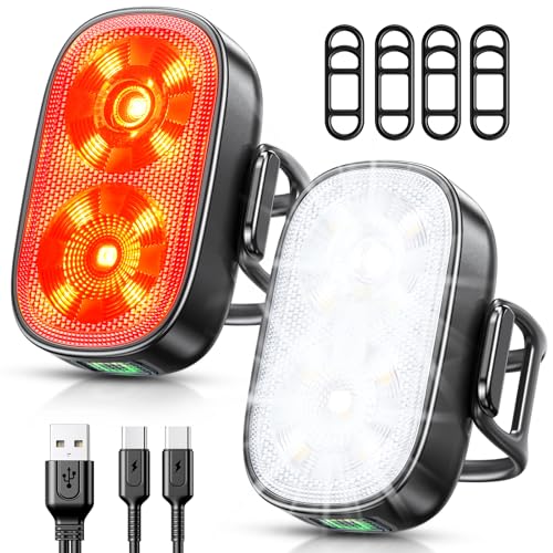 Posugear Lumiere Velo, Eclairage Velo LED Puissantes, USB C Rechargeable Lampe Velo Avant et Arriere, IPX5 Phare Vélo Accessoire pour VTT Course Route Adulte Enfant