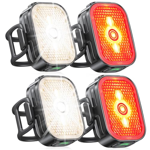 Flintronic Lumiere Velo Rechargeable Avant et Arrière, Lampe LED de Vélo, Kit Éclairage Vélo Éclairage USB Antichoc Impermeable Phare Lampe LED de Vélo pour VTT VTC Cycliste Poussette
