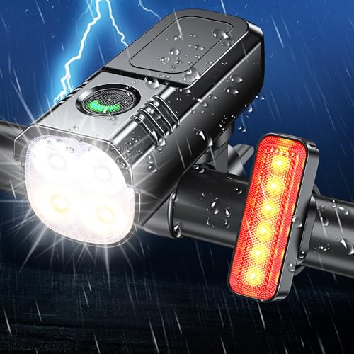 Lumiere Velo LED Ultra Puissant, Éclairage Vélo Avant et Arrière 6+4 Modes, Luminosité élevée, Rechargeable USB, Étanche IPX4, Luminosité Réglable, Facile à Installer Lampe Vélo pour VTT, VTC