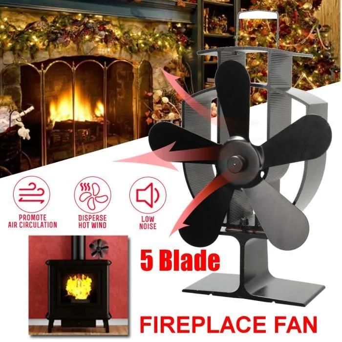 TEMPSA 5 Lames Accueil Ventilateur De Poêle Bois Chaud Log Poêle Bois Ecofan Ventilateur De Cheminée Noir Et Blanc Efficace