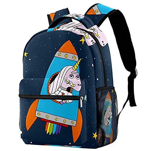 Lsjuee Licorne drôle avec des fusées Galaxy étoiles sac à dos voyage d'école pour les étudiants en plein air randonnée Camping