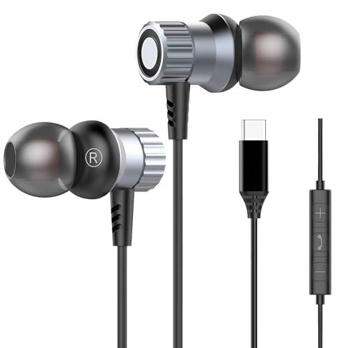 Ecouteurs Filaire USB C, Écouteurs USB C pour Samsung Galaxy S25 S24 Plus S23 FE S22 S21 Ultra S20 A54 A55 5g, Intra Métal Filaire Ecouteur Type C avec Microphone for iPhone 16 15 Pro Max