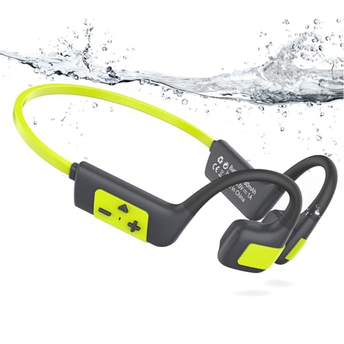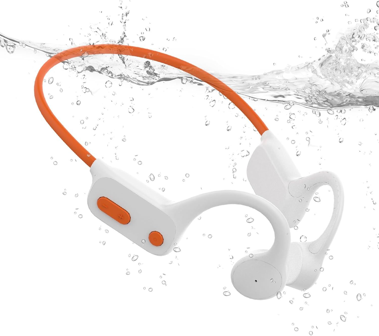 MONODEAL Casque Conduction Osseuse Natation, Ecouteur Waterproof Natation Bluetooth 5.3 IP68 MP3 Etanche Natation 32GB,Ecouteurs sans Fil Sport Ecouteur Piscine, Natation,Surf, la Course Pied