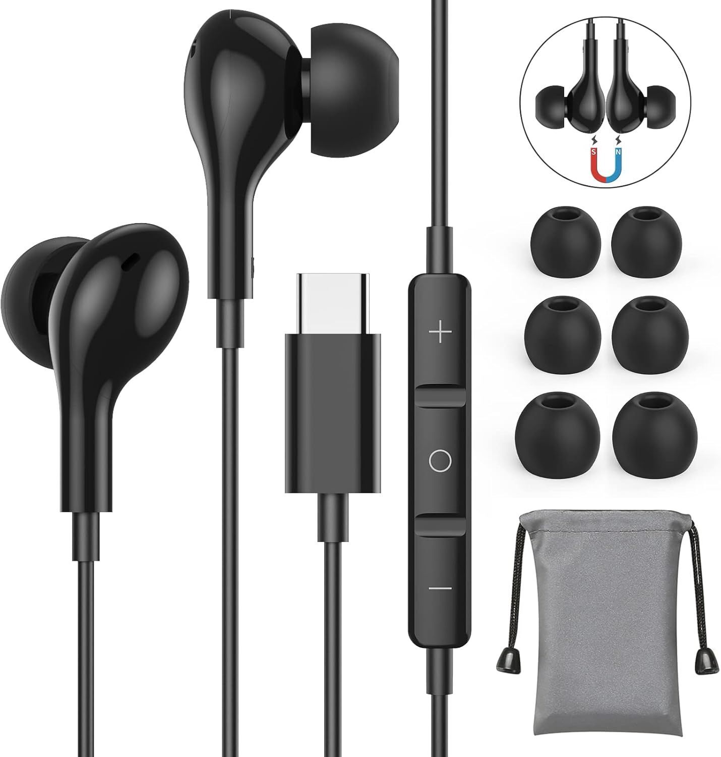 Ecouteur USB C pour Samsung S23 S22 S25 Ultra 15 Pro Max 16 Plus 17 Magnétique Écouteurs USB C Stéréo Intra-Ecouteurs USBC avec Filaire et Micro pour Samsung S24 S21A54 A56 A16 5G Pixel 9 8