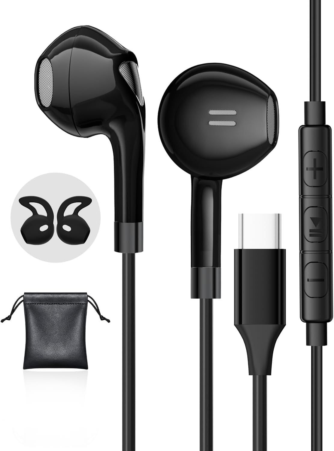 Ecouteur USB C pour iPhone 17 16 Samsung S25 S24 Ultra A56 A16 Ecouteurs Filaire USB C HiFi Écouteur avec Micro Écouteurs USBC pour iPhone 15 Samsung S24 S23 FE A26 A55 Google Pixel 9 Pro iPad 10 11