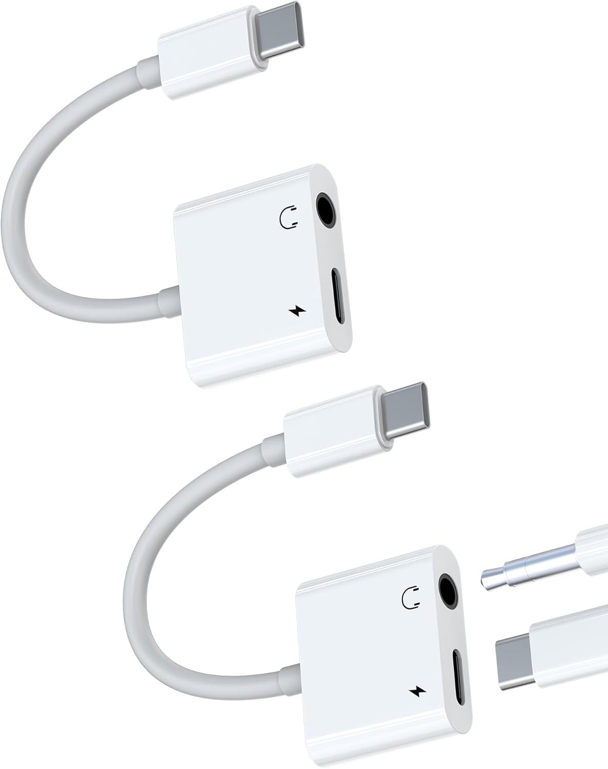 Adaptateur USB C Vers Jack 3.5mm(Lot de 2)AUX Casque Audio Type C Chargeur Câble Splitter Pour iphone 16 15 Pro Max Compatible Avec Samsung S24 S23 Écouteur Auxiliaire Connecteur Pour ipad Pour Apple