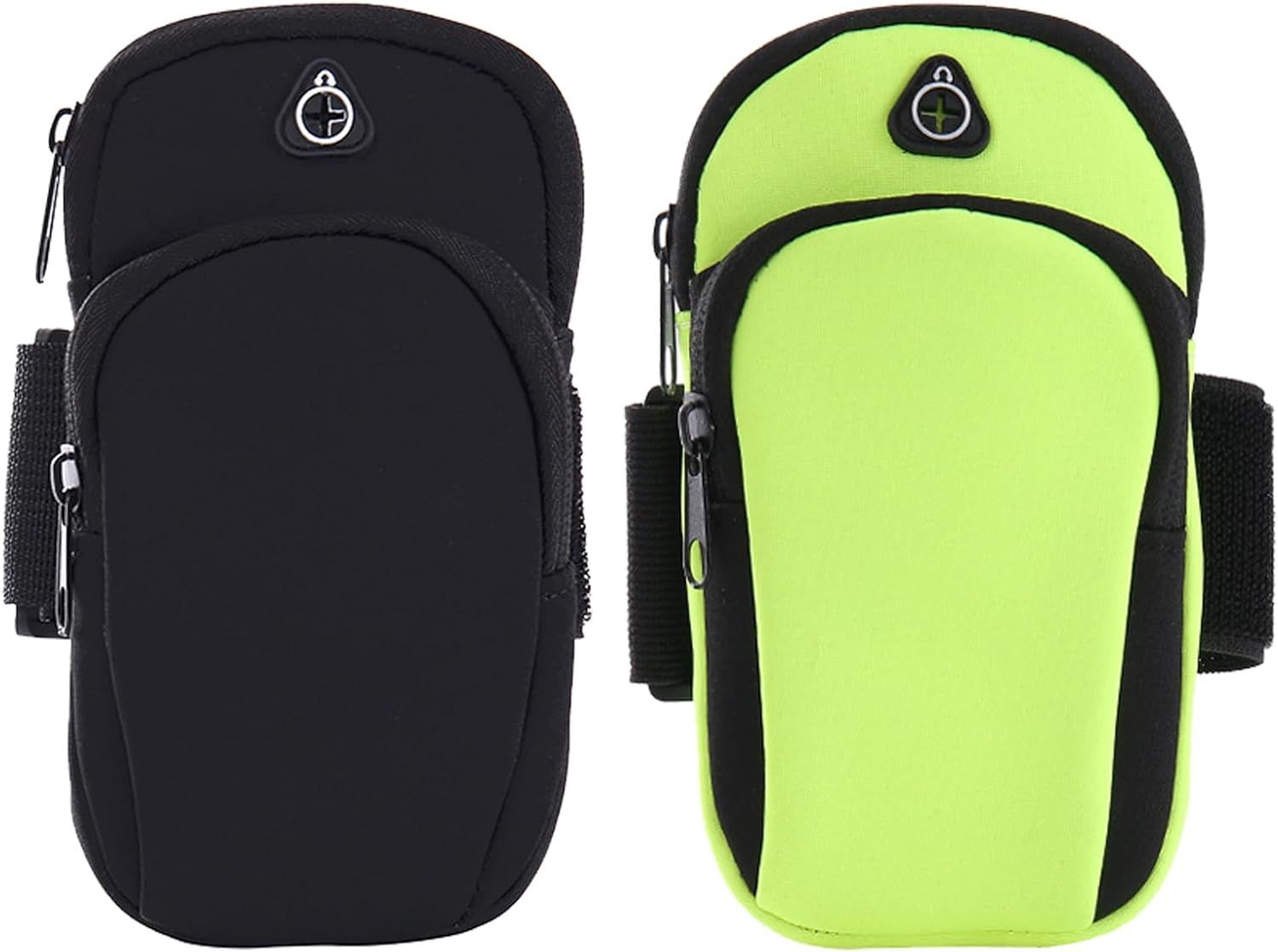 HTTDSLF 2 Pièces Brassard de Sport avec Poche Écouteur, Bracelet Sport pour téléphone Portable Universel, Brassard Smartphone Sport Porte Telephone Pochette, jusqu'à 6.7" (Noir + Vert)