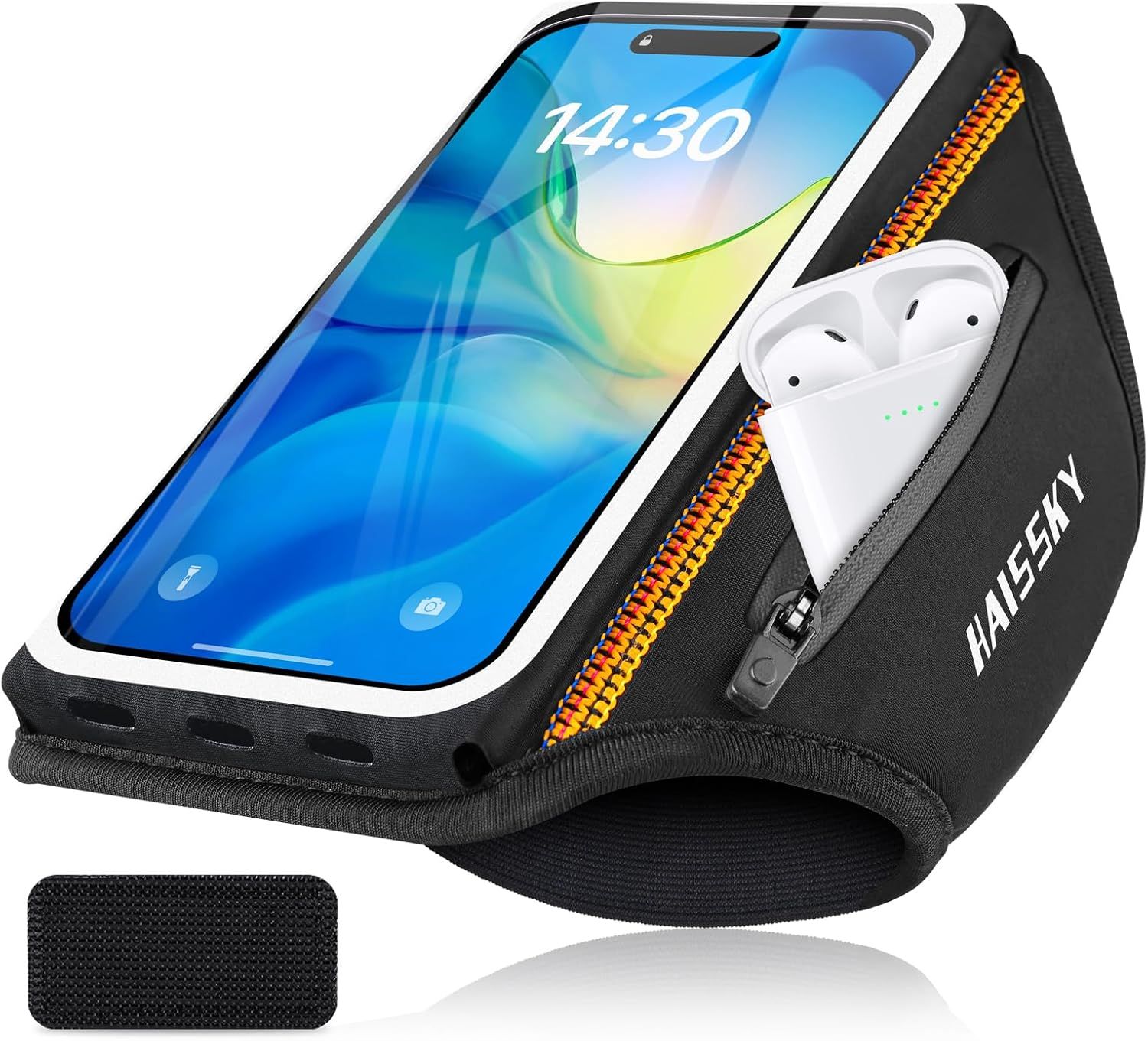 HAISSKY Brassard de Sport avec Poche Écouteur, Brassard Sport pour iPhone 17 Pro Max 16 Pro 15 14 Plus 13 12 11, Brassard Telephone Smartphone Running pour Jogging Cyclisme Randonnée