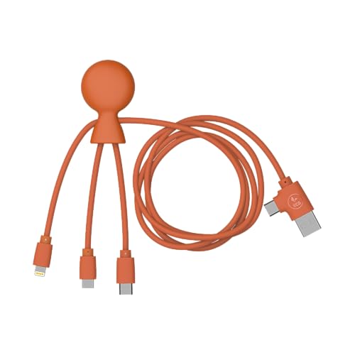 Xoopar Long Câble Multi USB 4 en 1 en Forme de Pieuvre - Cable de Charge Universel 1M de Long - Prise USB Universel USB-C, Ligthning,Micro USB, Ideal pour Smartphone Tablette Ecouteur Mr Bio Orange