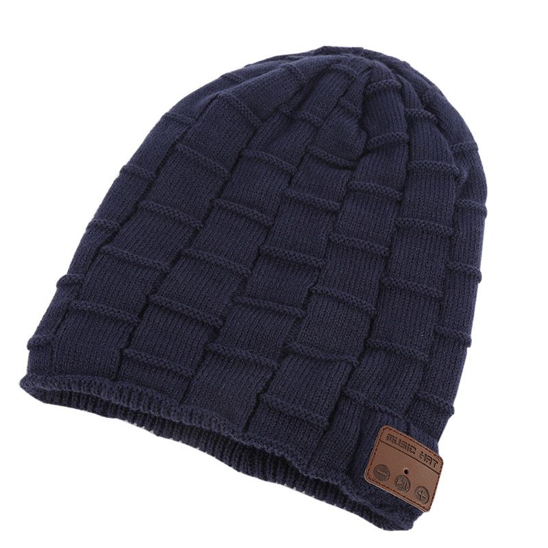 Casque de sport de plein air sans fil compatible Bluetooth,écouteur unisexe,chapeau stéréo,bande de sauna de musique magique,casque pour smartphone - Type Big Grid Navy