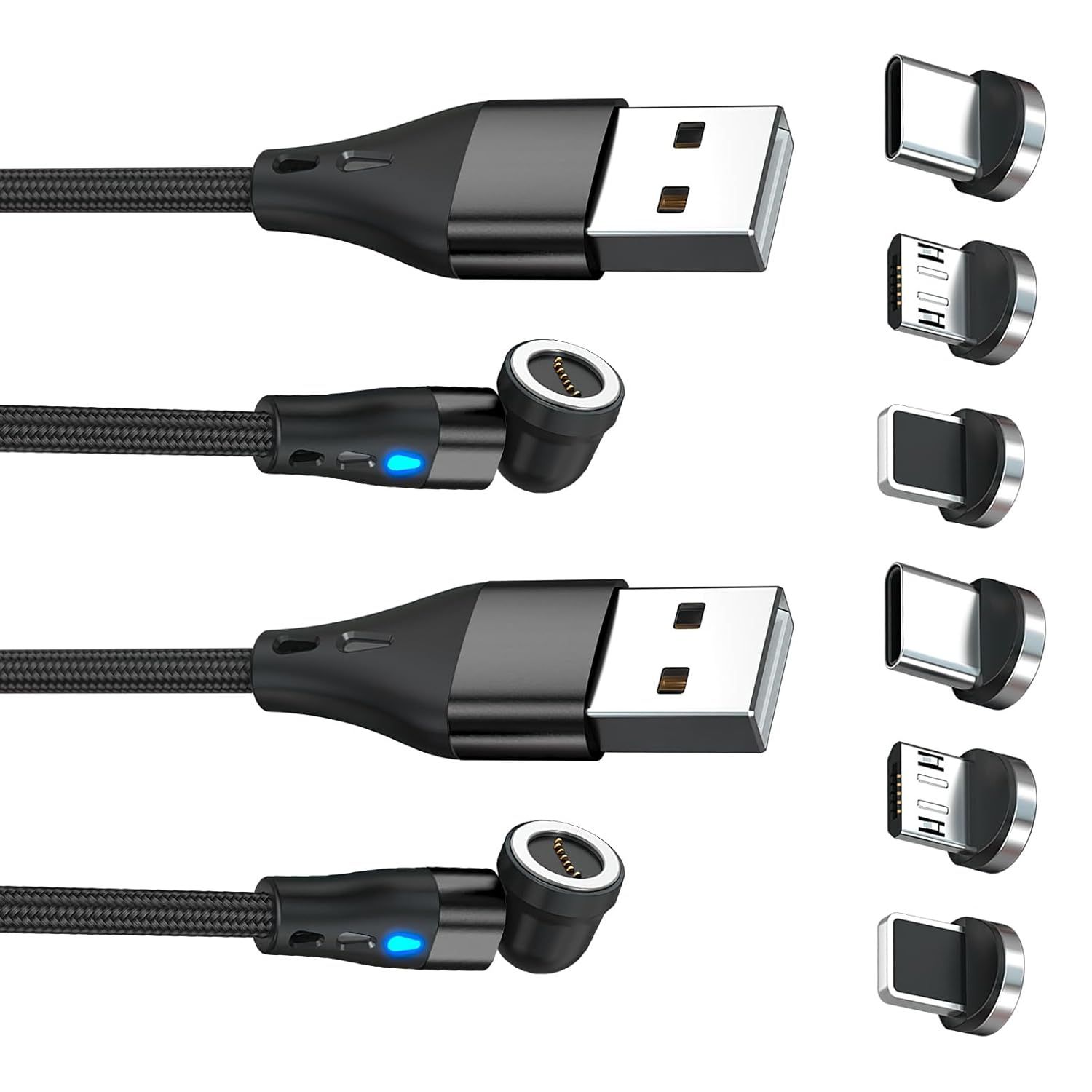 CLOUDDS-Câble Usb C Magnétique 2M+1M,3 En 1,Charge Rapide 3A,Universel 360° Et 180°,Pour Smartphone,Tablette,Ordinateur Portable,Écouteur