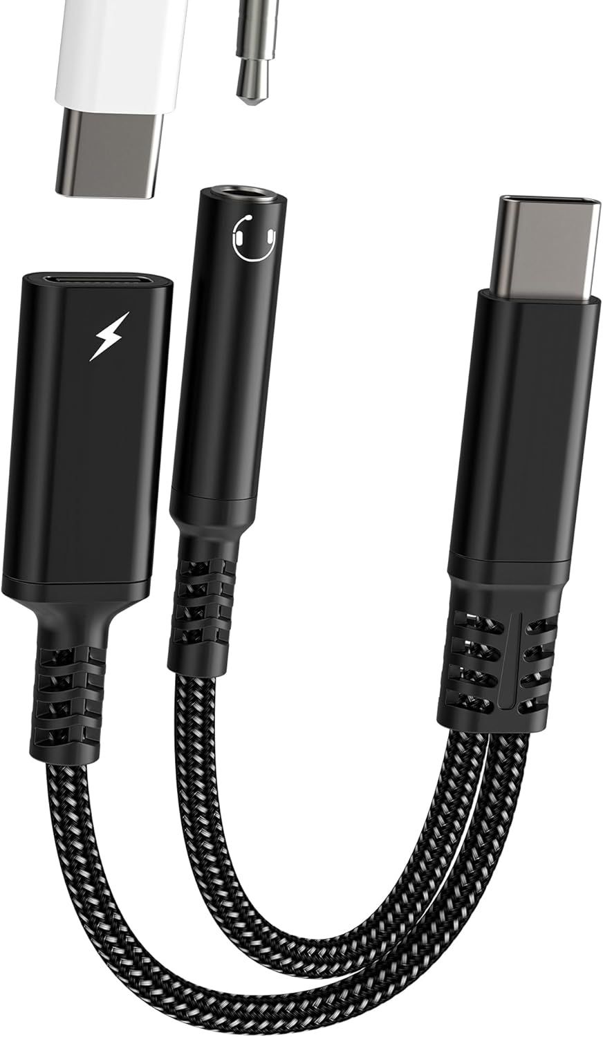 Adaptateur USB C Jack 3.5mm avec Charge Rapide, 2 en 1 Type C Audio Charge Adaptateur Câble, Adaptateur Câble Audio Écouteur Tressé Type C pour iPhone 15/Pro/Max, Samsung S24/S23, Huawei USW