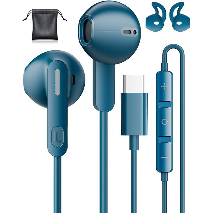 Ecouteur USB C pour iPhone 17 16 Samsung S25 S24 Ultra A56 A16 Écouteurs Filaire USB C Casque avec Micro HiFi Stéréo Ecouteur Type C pour iPhone 15 Samsung A35 A55 S22 S23 FE Flip 7 Google Pixel 9 Pro