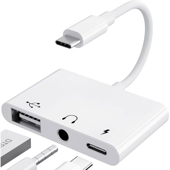Subzonal-3 En 1 Adaptateur Usb C Jack 3,5 Mm Avec 60w Charge Rapide Adaptateur De Otg, Audio Ecouteur Splitter De Type C Vers Aux Pour Iphone 15/16 Samsung Galaxy S24 Ultra S23 S22 I-Pad Pro Air Pixe
