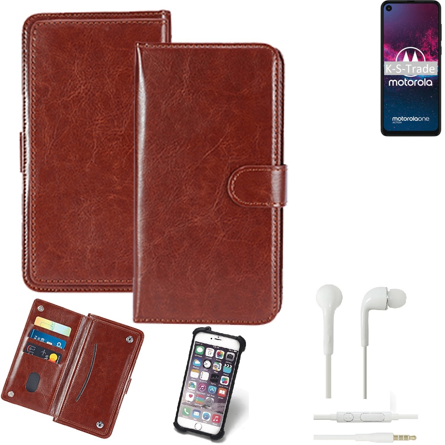 Housse téléphone + écouteurs pour Motorola one action Coque portefeuille brun