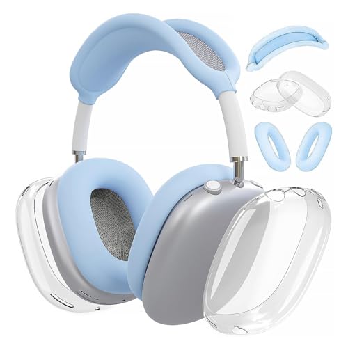Woyinger Coque en silicone pour AirPods Max (2024/2020), en TPU souple et transparent, housse pour écouteurs, bande pour AirPods Max (USB-C/Lightning), accessoires transparents pour casque Apple, bleu