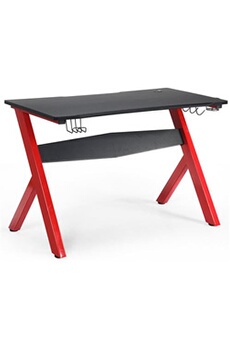 Bureau de jeu bureau gamer surface en fibre de carbone 120 x 60 x 76cm avec porte-gobelet, crochet pour ecouteurs et supports audio noir et rouge