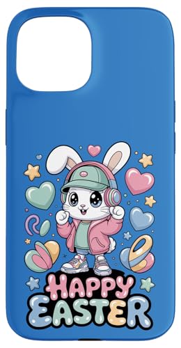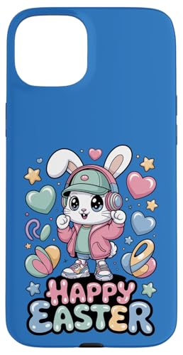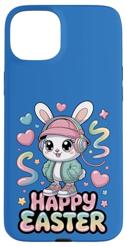 Lapin de Pâques Kawaii avec écouteurs Pastel Happy Easter Coque pour iPhone 15 Plus