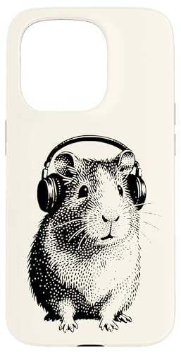 Cochon d'Inde avec des écouteurs Coque pour iPhone 15 Pro