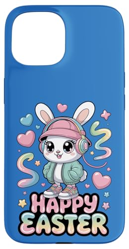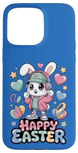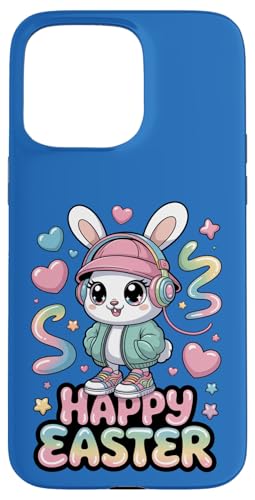 Lapin de Pâques Kawaii avec écouteurs Pastel Happy Easter Coque pour iPhone 15 Pro Max