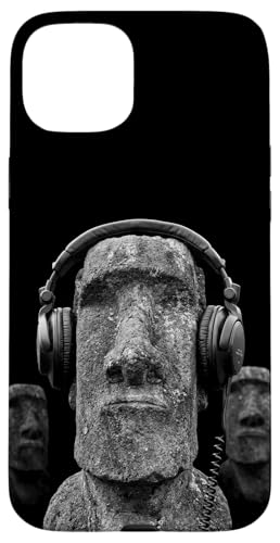 Y2K Grunge Tête d'île de Pâques avec écouteurs Coque pour iPhone 15 Plus
