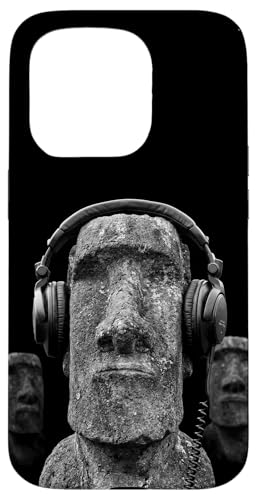 Y2K Grunge Tête d'île de Pâques avec écouteurs Coque pour iPhone 15 Pro