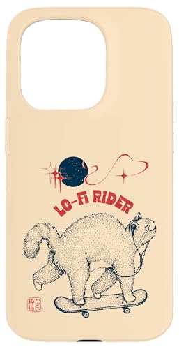 Skater Lo-FI Rider Music Cat Écouteurs rétro Coque pour iPhone 15 Pro