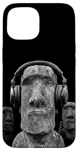 Y2K Grunge Tête d'île de Pâques avec écouteurs Coque pour iPhone 15
