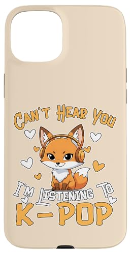 K Pop Fox Animal Mignon avec écouteurs pour Adolescente – Pop coréen Coque pour iPhone 15 Plus