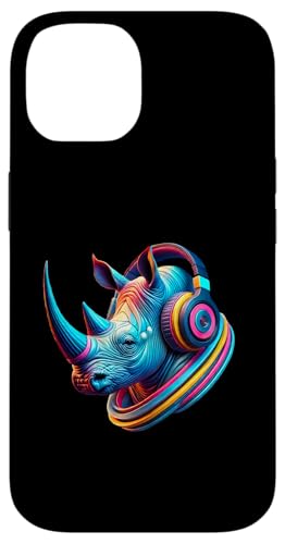 Costume de rhinocéros coloré avec écouteurs Coque pour iPhone 14
