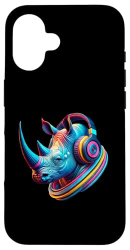 Costume de rhinocéros coloré avec écouteurs Coque pour iPhone 16