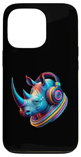 Costume de rhinocéros coloré avec écouteurs Coque pour iPhone 13 Pro
