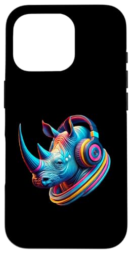 Costume de rhinocéros coloré avec écouteurs Coque pour iPhone 16 Pro