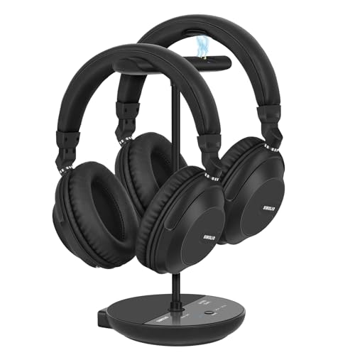 WallarGe Lot de 2 écouteurs sans Fil Bluetooth Over-Ear pour Regarder la télévision, émetteur RF, Pas de Retard de synchronisation labiale, Plug &