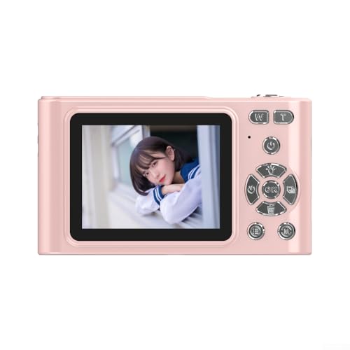 Besshepplo Appareil photo numérique 4K avec résolution photo 48 MP, zoom numérique 16x, écran 2,4", anti-tremblement, détection de visage et fonction accéléré, design compact léger et idéal (rose)