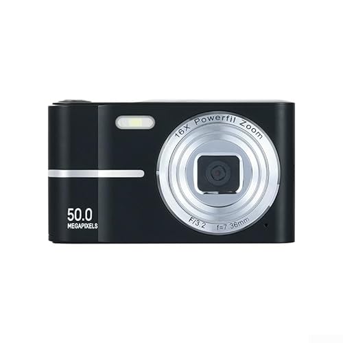 Besshepplo Appareil photo numérique 4K avec résolution 50 MP et zoom numérique 16x écran de 6,1 cm, anti-tremblement, autofocus, détection de mouvement, chargement de type C, design compact (noir)