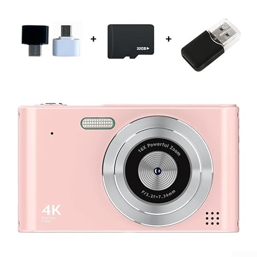 Besshepplo Appareil photo numérique 4K avec résolution photo 48 MP, zoom numérique 16x, écran 2,4", anti-tremblement, détection de visage et fonction accéléré, design compact léger et idéal (rose 32