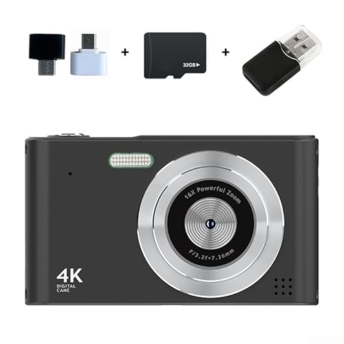 Besshepplo Appareil photo numérique 4K avec résolution photo 48 MP, zoom numérique 16x, écran 2,4", anti-tremblement, détection de visage et fonctions accéléré, design compact léger idéal (noir 32G)