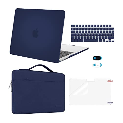 MOSISO Compatible avec MacBook Air 13 Pouces M4 M3 M2 A3240 A3113 A2681 2022-2025,Coque Rigide 13,6" &Pochette Transport&Clavier QWERTY&Protecteur D'écran&Couvercle Webcam,Bleu Marin