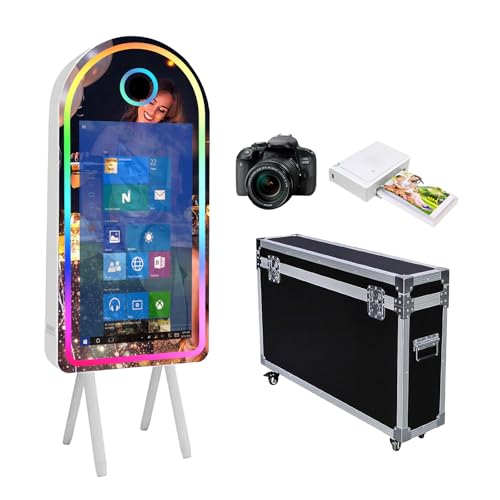 WideMeet Écran tactile LCD de 21,5 pouces miroir magique portable coque support cabine photo selfie pour fête de mariage événement location (machine blanche, ensemble complet machine cabine photo)