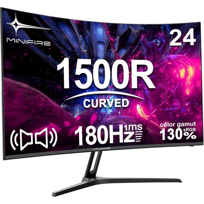 Minifire écran pc Gamer incurvé 24 Pouces 100Hz avec Haut-Parleur -1500R FHD (1920 x 1080p) VA Panel, MPRT 1ms, sRGB100%, Less Blue Light, HDMI 1.4, Type-C 2.5W, supporte VESA 75 * 75 - Noir(MF24C1)