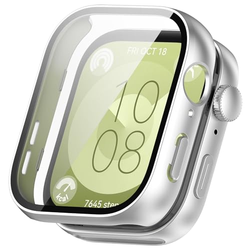 Coque de protection pour Huawei Watch Fit 3 - En verre trempé - Hard PC ultra fin - Protection d'écran complète pour Huawei Watch Fit 3 - Matte - Argenté