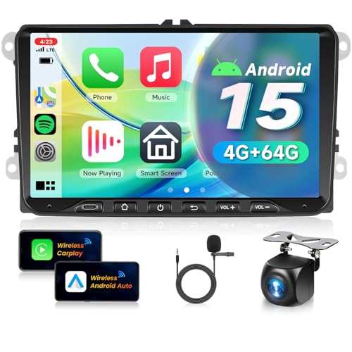 Hikity [4+64GB] Android 15 Autoradio, CarPlay Android Auto sans Fil, pour VW Golf 5 6 Passat Polo Tiguan Touran Caddy Skoda Radio, Voiture Écran Tactile 9 Pouces GPS/WiFi/Mirror Link/Bluetooth/Hi-FI