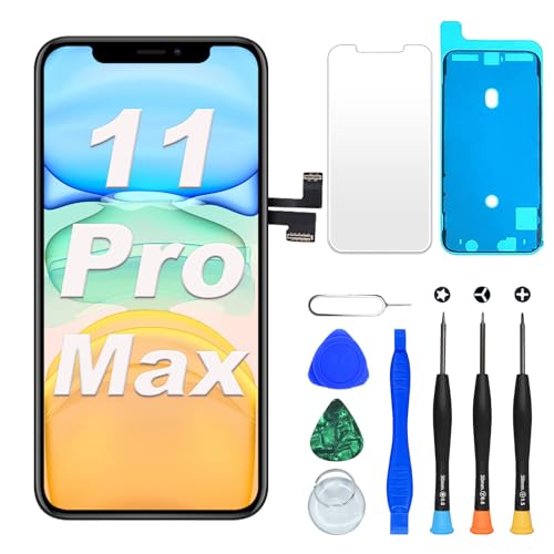 DIGI4U Ecran pour iPhone 11 Pro Max LCD, Compatible Face ID, Écran Retina 3D Touch True Tone avec Assemblage Digitizer, Kit d’Outils de Réparation et Adhésif Étanche