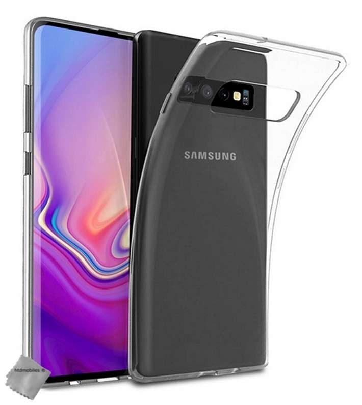 Housse etui coque silicone gel Samsung Galaxy S10 Plus + film ecran TRANSPARENT