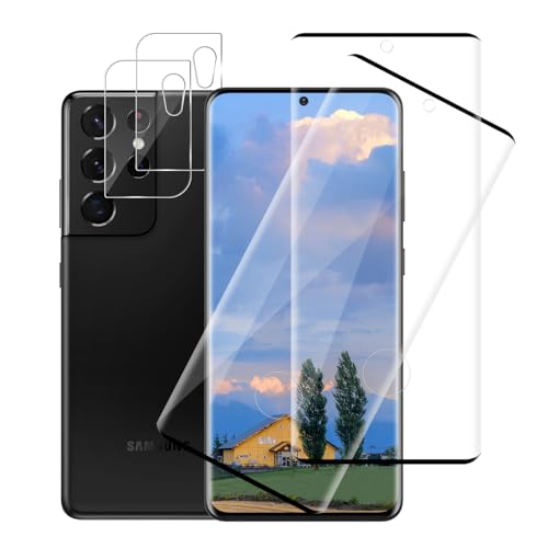 JZG 2 x pour Protection écran Samsung Galaxy S21 Ultra [Non-verre], 2 x Verre Trempé d'objectif, Sans bulles, Facile à installer, Ultra-HD