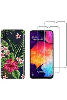 Coque fantaisie pour Samsung Galaxy A50 et 2 protections écran verre trempé [Fleur exotique]
